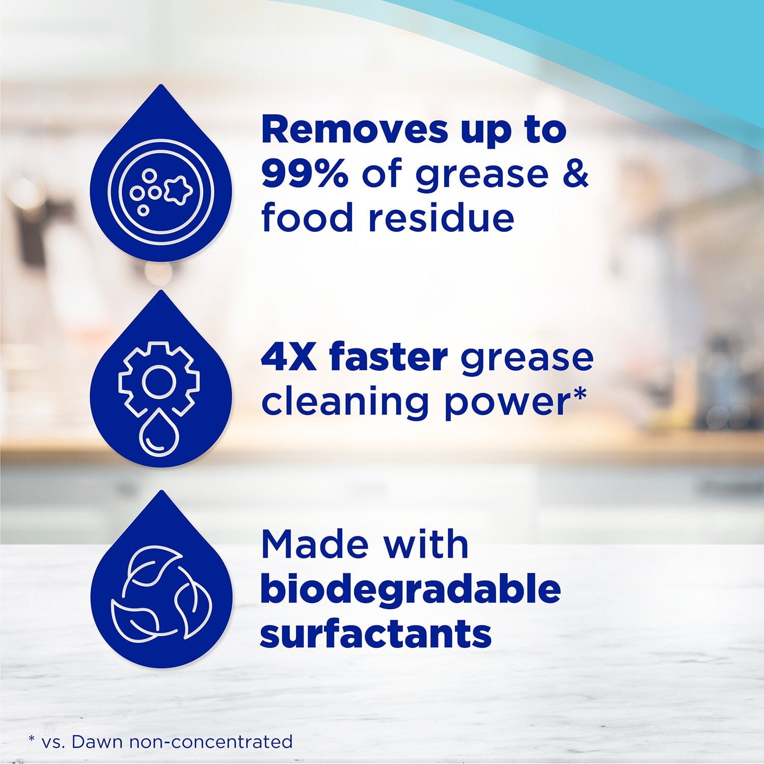 *Based on cleaning ingredients per drop vs. non-concentrated Dawn